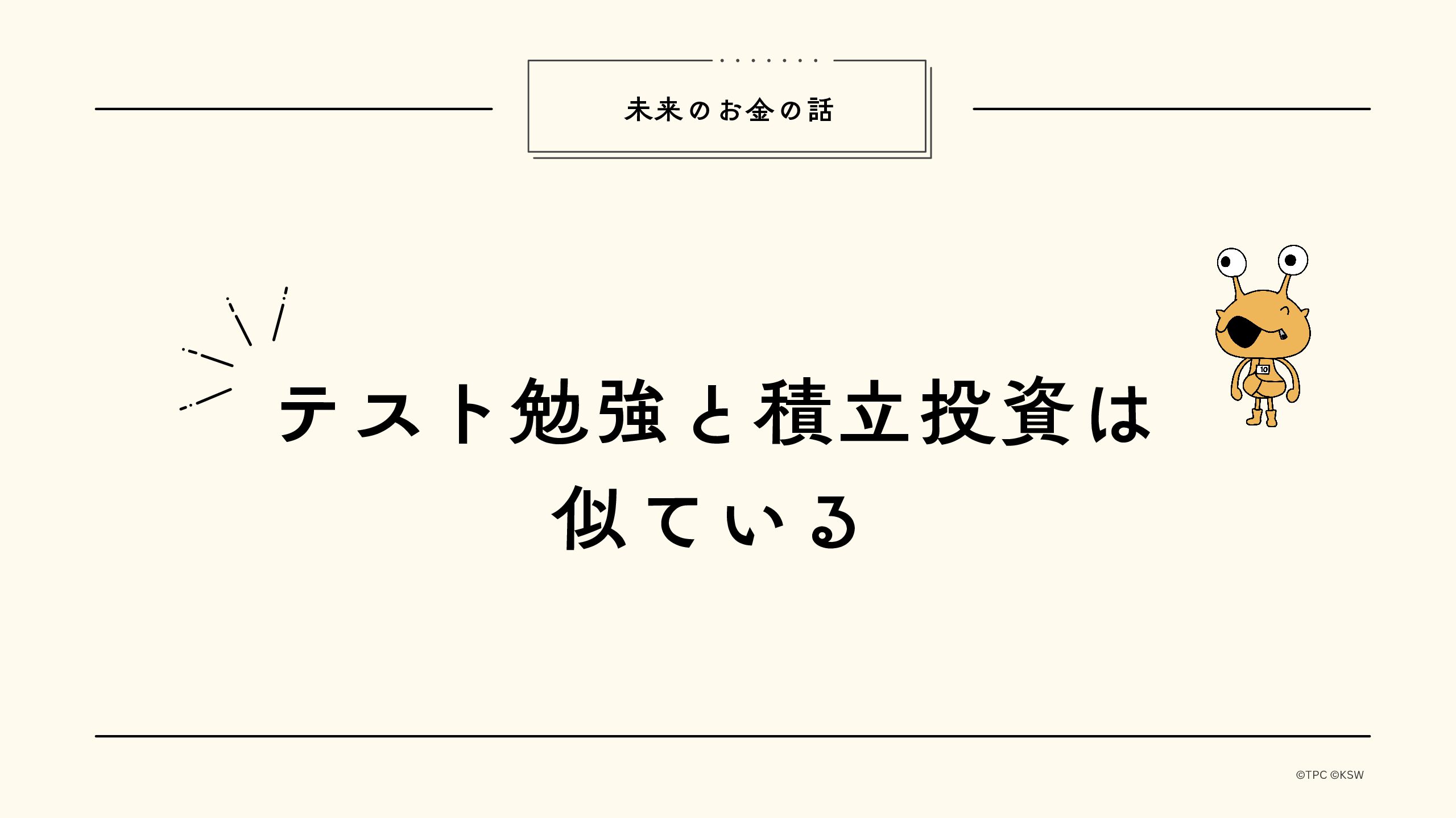 未来に伝えたいお金のこと テスト勉強と積立投資は似ている 中学生の子供が定期テスト前になると、机に向かって少しずつ勉強を始めます。毎日30分、1時間とコツコツ続けている姿を見ると... 2025.09.23 未来に伝えたいお金のこと